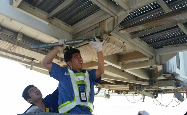 旅客登机桥是提供旅客上下飞机服务的设备,操作它有着苛刻的安全管理规定、规范的操作流程,以保障旅客和航空器的安全。它也有着严格的维保标准、严谨的维保措施,以保证设备的正常使用,为航空公司和旅客提供满意的服务。我2008年大学毕业来到天津机场成为一名登机桥维修工,在到机场客桥分部工作前,我和很多人一样对旅客登机桥设备一点都不了解,看到这“庞然大物”时,它一头连着航站楼,一头靠接着飞机,能稳稳前进后退、升高降低、左右摇摆,惊奇之余我想以后能搞明白它,为它排故维保是多么让人感到自豪的事情。随后我就钻入了业务的海洋,每天读理论、看图纸,跟着厂家工程师和老师傅排故障、查线路。面对师傅的教导,我认真梳理、铭记于心。面对设备的故障,我从不放过,要么亲自排故,要么认真观看厂家人员或师傅的排故过程,从中汲取实作的经验和技巧的营养。不管是寒冬酷暑,还是白天黑夜,在设备上一干几小时已经是平常事了。