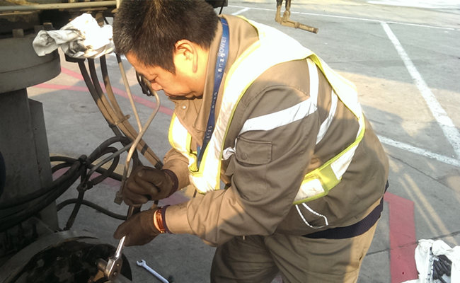 “铛、铛、铛” 第一遍轻敲测试并没有发现有开焊或脱焊的情况。吴师傅凭借多年的钣金与电气焊工作经验感觉焊接面肯定出现了裂痕,只是现在肉眼看不到而已。他没有放弃轻敲测试,重复了刚才的工作再一次开始敲击,敲击的力度也比第一次要有所加大,直到第三次敲击测试后焊接面上才出现了肉眼可以明显看到的细微裂痕,这时候吴师傅深深地舒了口气,他知道问题找到了,这将有效的避免登机桥难以预料的安全故障隐患。
