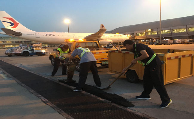 “呼叫场务,这里是AOCC,南航机务报,221机位机尾后雨水篦子周边道面发生破损,请立即派人去现场查看并解决”。接到消息后,首都机场股份公司飞行区管理部场道管理模块的班长班忠民立即与班组维保员侯志强驾驶应急抢修车赶到221机位现场,眼前的一幕让他俩吃了一惊。