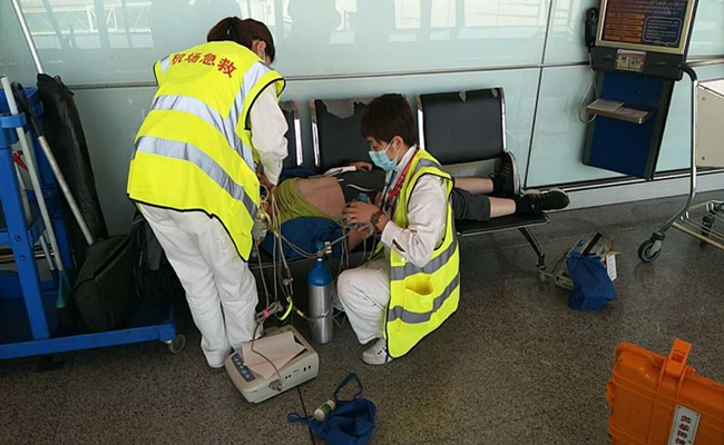 每一通电话都牵系着值班医务人员的心。现场值班的医生、护士、司机接到出诊指令即刻携带急救设备跑步或驱车以最快的速度赶往事发地点。由于航班延误,候机时间长,有些旅客出现焦虑、头晕等现象,医护人员见此情况一方面耐心安抚旅客情绪,给予必要的心理疏导;另一方面积极为其进行医疗处置。