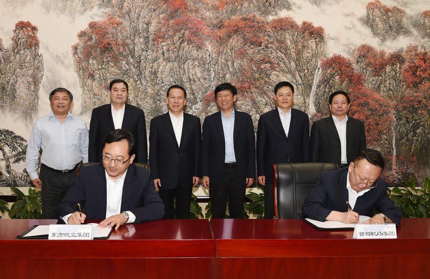 集团公司办公室、战略发展部、财务管理部、人力资源部、经营管理部、质量安全部、机场建设部、法律事务部,新机场建设指挥部,首都机场地产集团;东航集团办公厅、法律部,东航北京分公司,中联航,东航股份地服部、商务委员会、综管部、规划部、财务部,东航北京指挥部的相关领导与主要负责人参会。