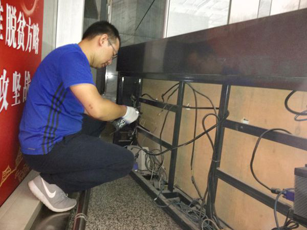 图:技术人员检查维修航显设备