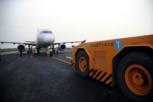 哈尔滨机场保障循环再制造基地首架飞机进场