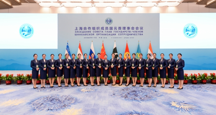 本网讯(贵宾公司:段薇报道)6月9日、10日,上海合作组织元首理事会于山东青岛如期召开,贵宾公司礼仪队队员继圆满完成APEC、G20、一带一路、金砖五国后,又一次以最完美、最出色的服务表现,圆满完成上合峰会礼仪服务保障工作,再一次将专业的礼仪服务展现在国际峰会中。