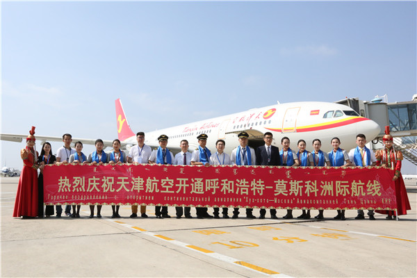 当日上午,呼和浩特—莫斯科航线首航仪式在呼和浩特白塔国际机场航站楼举行。内蒙古自治区发改委、国资委、商务厅、旅发委、呼和浩特市政府以及内蒙古民航机场集团、天津航空有限责任公司等相关单位领导出席了首航仪式。