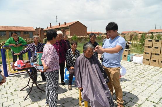 青年志愿者义务为村民理发