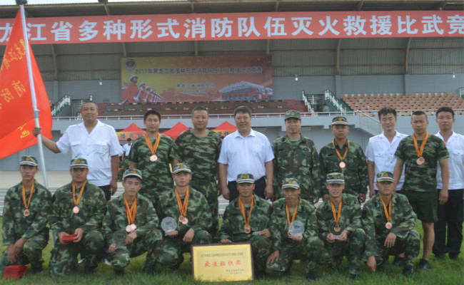 2017年消防大队战训班组选派10名优秀消防员组成消防集训队,参加了黑龙江省多种形式消防队伍灭火救援比武竞赛。赛前参赛人员从严、从难组织训练,不畏天气炎热与训练伤痛困扰,互相学习、互相赶超、互相鼓励,以赛促训,以训代战,在全体战斗员当中起到模范带头作用,提高全员业务训练的积极性,提升整体灭火技能水平。