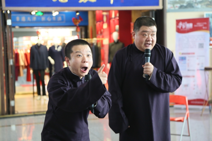 19日上午,“我们的中国梦”天津市文化进万家活动暨天津市新时代“红色文艺轻骑兵”天津市曲艺团小分队慰问演出在天津机场2号航站楼出港大厅精彩开演。京韵大鼓《光照华夏》、相声《节日谈》、雷琴独奏《故乡欢歌》及鼓曲联唱《只留清气满乾坤》等节目依次上演,其中演员郭玉文带来的魔术表演将本次演出推向高潮,现场观众一起见证了不可思议的奇迹。多种风格、多种形式的表演作品,给旅客带来了丰富多彩的娱乐享受,博得了在场旅客的热烈掌声。