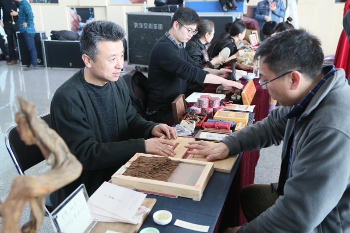 在非遗中心门前,艺人们向旅客展示毛猴制作、杨柳青版画、纳鞋底、盘扣等传统手工技艺,并邀请旅客现场互动体验。来往旅客都被吸引其中,看得津津有味,对精彩绝伦的传统手工技艺连连称赞。