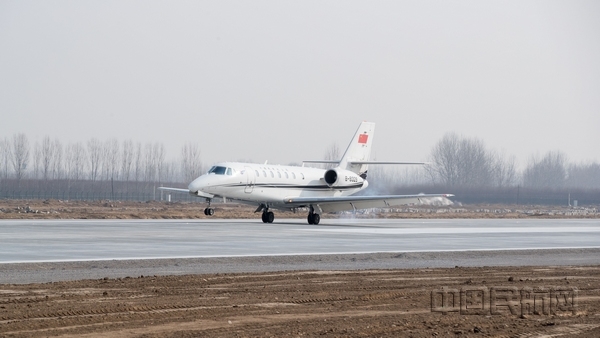 奖状680校验飞机平稳地降落在北京大兴国际机场。汪洋 摄