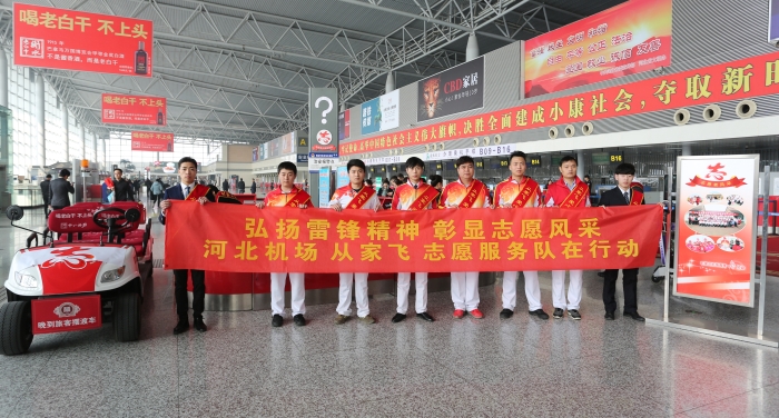 3月5日上午,由来自地面服务部、航空护卫部、贵宾公司、地运公司等单位10名青年组成的服务小分队,在石家庄机场候机大厅“学雷锋志愿服务站”开展了以“爱心接力 畅行机场”为主题的特色志愿服务项目,针对老幼病残孕等需要帮助的特殊旅客提供“一站式”服务。