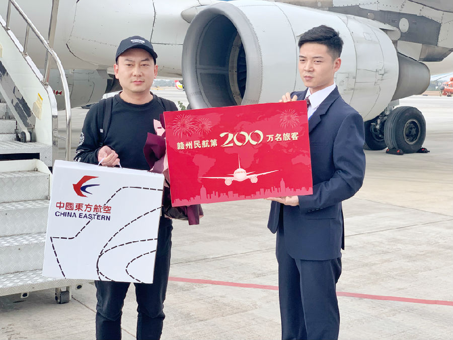 当天上午9:55,乘坐MU5585次航班从上海浦东飞赣州的旅客许峰先生,成为赣州机场今年第200万名旅客。赣州机场在停机坪上举办了简短的仪式,赣州机场分公司、赣州航空发展服务有限责任公司相关领导及部分员工代表共同见证了这一历史性时刻。