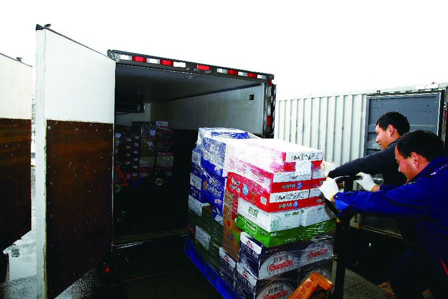 商贸公司联合各便利商户,加大饮料、面包、方便面等基本保障品的配送数量,确保航站楼内店面货品充足。(商贸公司 李博/摄)