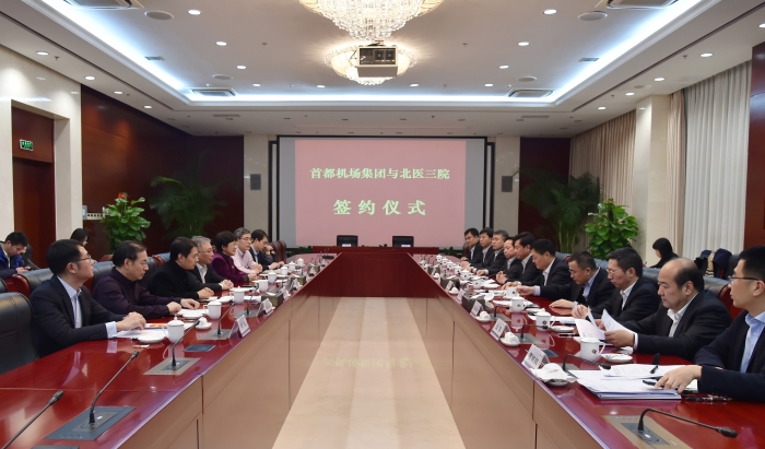 集团公司经营管理部、财务管理部,首都机场医院、北医三院机场院区相关领导出席了签约仪式。