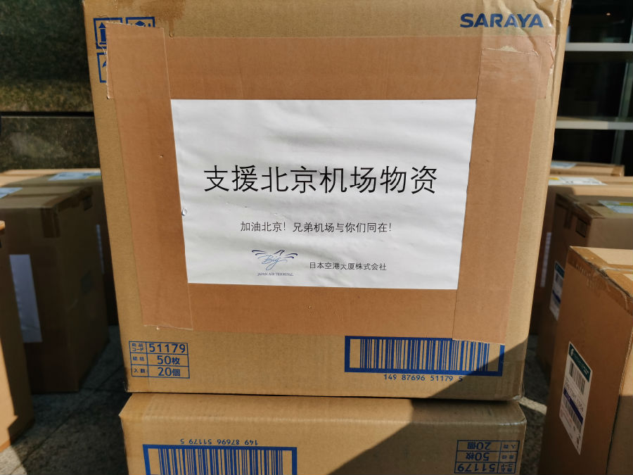 本网讯(集团公司国际科技部:谢菲报道)2月6日下午,羽田机场捐赠的30余箱医用口罩顺利送达集团公司。包装箱上一句“加油北京!兄弟机场与你们同在!”温暖了在场每一个人的心。