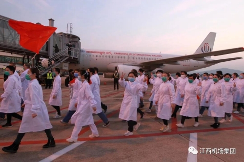 本网讯(江西机场集团:连三思、徐芳报道)3月18日,江西省第七批、南昌市第五批援助湖北医疗队圆满完成任务,从武汉乘专机返程,顺利抵达南昌昌北国际机场。江西省委书记刘奇、省长易炼红前往机场迎接。南昌昌北国际机场以最高礼遇、最深敬意迎接英雄凯旋。 南昌机场安检特制字牌欢迎白衣天使回家 飞机“过水门”仪式 医疗队下机 18时03分,随着飞机降落南昌昌北国际机场,机场举行“过水门”仪式,以民航最高礼遇迎接医护人员回家,为最美逆行者“接风洗尘”。沿途机场工作人员手持“致敬白衣天使”“欢迎英雄回家”等字牌,列队欢迎白衣天使,向守护生命的抗疫英雄们致敬。 交警铁骑列队欢迎 为做好此次包机保障任务,南昌机场高度重视,积极部署,第一时间组织召开协调会,明确任务分工,细化保障流程。为返赣医疗队开通绿色通道,安排专用停机位,增加地面保障人员,安排专人进行现场人员、车辆服务引导,加强行李运输保障。在各保障单位和驻场单位的密切配合下,南昌机场顺利完成了105名援湖北医疗队队员返赣包机保障任务。 105名医护人员凯旋,英雄们脸上洋溢着幸福的笑容 据统计,截至3月18日,南昌机场全力保障、累计运输防疫人员727人次,保障应急物资航班1515架次,运输应急物资980.5吨;赣州机场累计运输防疫人员211人次。全力保障江西支援湖北医疗包机,机场以充分的准备和高质量、贴心的服务为医疗队员保驾护航。随着江西驰援湖北医疗队陆续返乡,南昌机场将继续做好服务保障工作,迎接英雄凯旋。