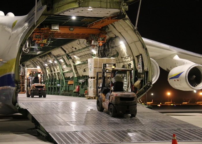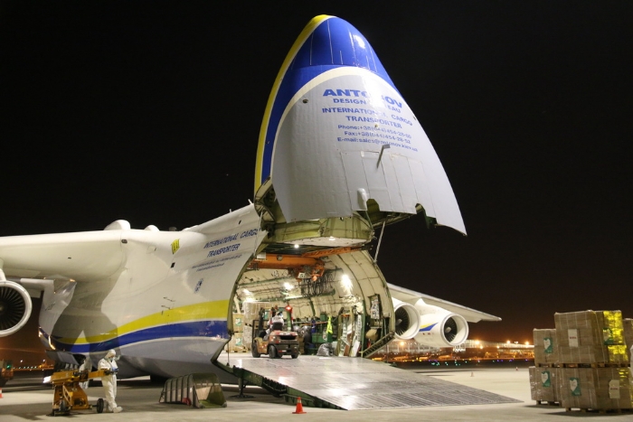 全球最大运输机AN225降落天津机场为波兰运送防疫物资