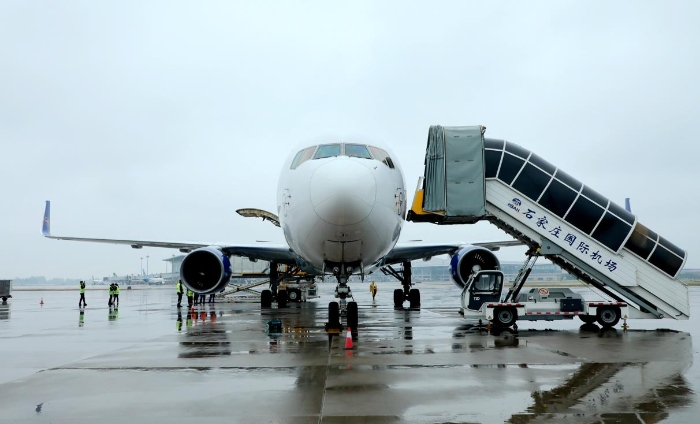 本网讯(河北机场集团:段娜娜、张毓报道)5月8日,一架波音767-300ER全货机装载9.3吨从中国采购的防疫物资从石家庄机场腾空而起,前往欧洲航空枢纽德国法兰克福机场,标志着石家庄—法兰克福定期国际货运航线正式开通,这是河北机场集团首次开通至欧洲的定期全货机航线 。