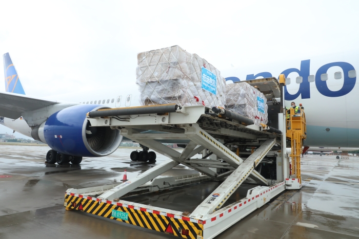 该航线由德国神鹰航空公司执飞,航班号为DE7898/9。每周二、四、五、七执行4班,17时25分(北京时间)从法兰克福起飞,次日6时飞抵石家庄; 9时30分从石家庄起飞,次日0时35分(北京时间)飞抵法兰克福。此次运输防疫物资共972件,主要为KN95口罩、红外温度枪、塑料面罩、一次性防护口罩等,该航班前期主要以运输疫情防控物资为主。