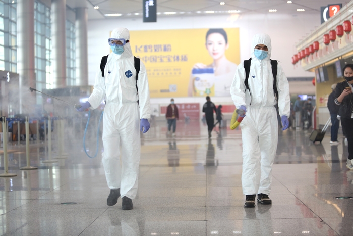 哈尔滨机场聘请专业人员对航站楼进行消毒消杀,做到全方位、全覆盖、无死角。