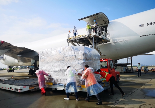 南昌机场现场保障南昌—洛杉矶全货机航班。