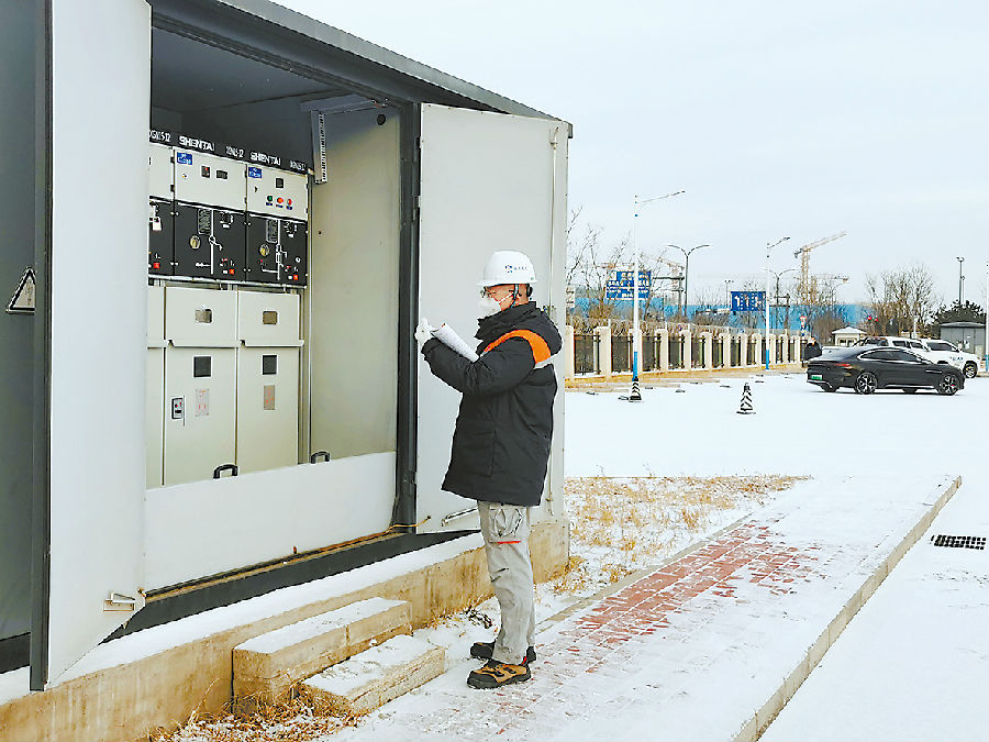 动力能源公司大兴机场分公司员工加强巡视10kV箱式变电站。(动力能源公司 于波摄)