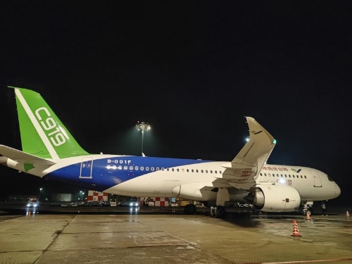国产大飞机C919首次亮相哈尔滨太平国际机场