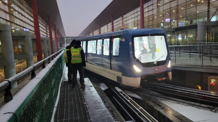 首都机场捷运系统在保障期间,密切关注航班动态和客流量,科学规划、适时调整车辆运力和发车时间,加强运行高峰期间T3C、T3E站台值守和旅客疏导,确保及时响应处理站台门、道岔等区域设备问题和紧急事件。针对春运期间降雪、低温天气,部门对轨道加热系统和轨道伸缩节进行专项检查维护,发现问题隐患及时维修和更换,随时关注旅客乘车环境,不断优化调整车内温度,确保旅客乘车的舒适感。