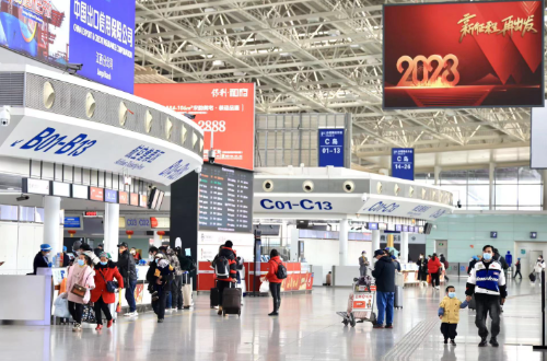 随着政策的不断落地和优化,外部环境好转,今年春运,民航业强劲复苏的信号不断。中国民航局公布的数据显示,1月全国旅客运输量同比增长达34.8%。而在南昌昌北国际机场,进入2月后单日客流“3万+”已成为常态,接近疫情前的水平。