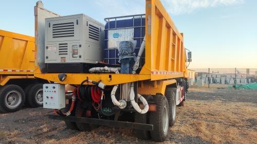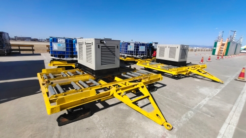 在解决安全问题的基础上,通过多次试验,首都机场以普通货运托盘为平台,在明确承载平台和外形尺寸的基础上,整合发电机组、水泵、除冰液桶、电动卷盘、除冰液管、喷枪等,通过设备利旧和“小改进”开发形成了“首都机场机坪除雪作业单元”。