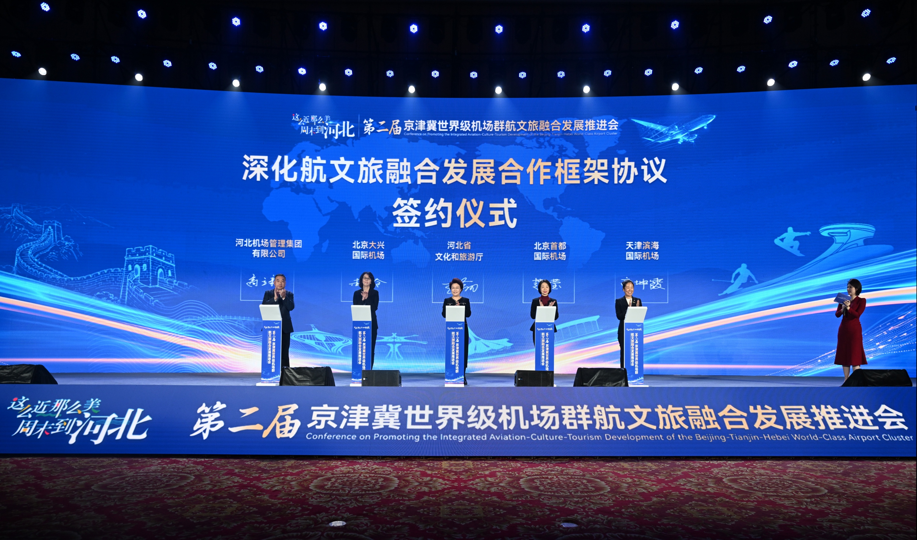 河北省文化和旅游厅分别与北京首都国际机场、北京大兴国际机场、天津滨海国际机场、河北机场集团签署《深化航文旅融合发展合作框架协议》
